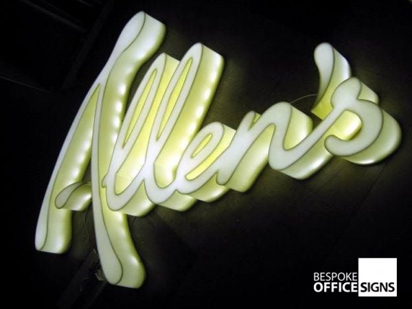 Custom made circular office logo illuminated with LED lighting